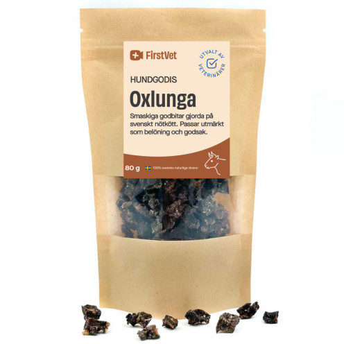 Letar du efter ett naturligt, näringsrikt och smakfullt hundgodis som faller även den mest kräsna hunden i smaken? Prova FirstVets hundgodis - svensk oxlunga! Tillverkad av 100% torkad svensk oxlunga, helt utan tillsatser eller konstigheter – bara ren, lufttorkad kvalitet som din hund kommer att älska.